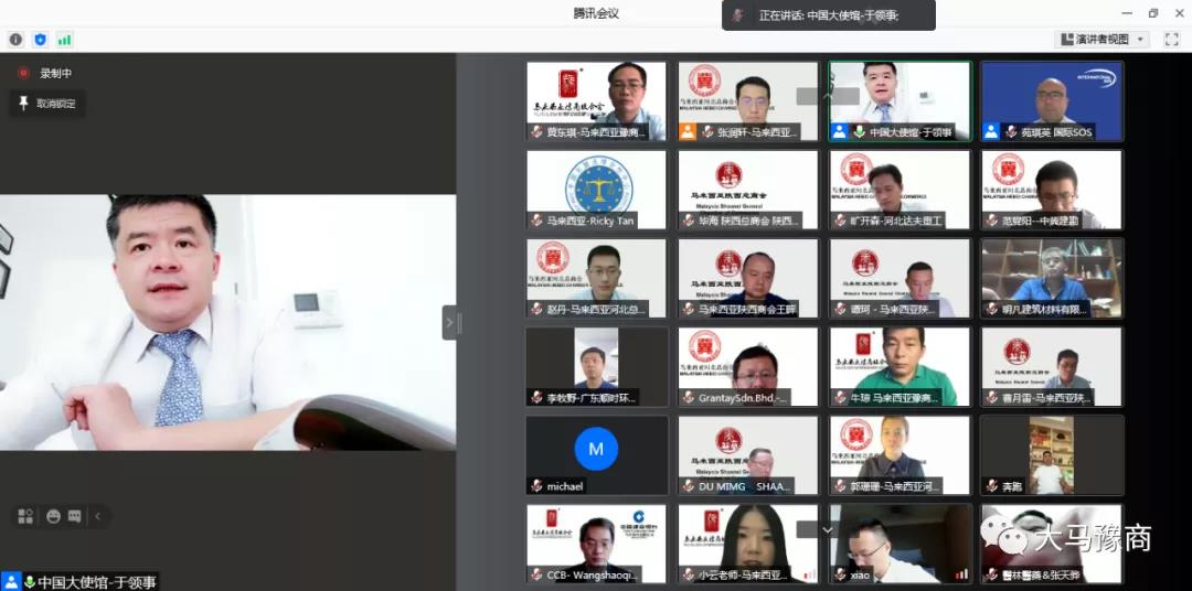 6月20日,马来西亚豫商联合会作为支持单位应邀参加由马来西亚河北总商会暨国际SOS东南亚区域中心联合举办的线上医疗和安全救援讲座。出席线上会议的还有中国驻马来西亚大使馆领事侨务处于凯军领事、肖云恩领事,马来西亚贸工部贸易工业服务司副主任黄碧仙,马来西亚河北总商会、中国东盟法律合作中心、马来西亚陕西总商会、中国建设银行马来西亚有限公司等商会和组织的负责人。